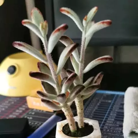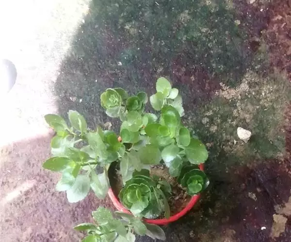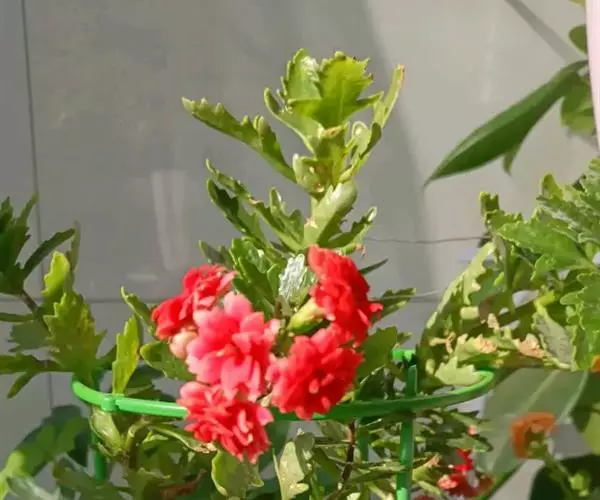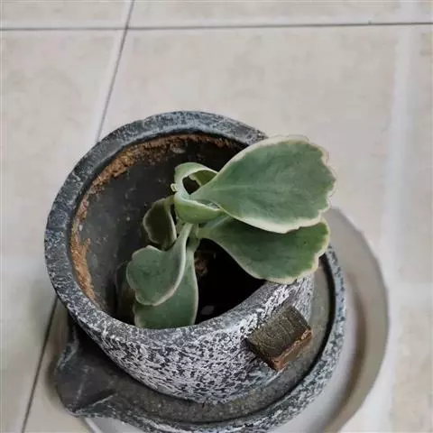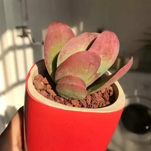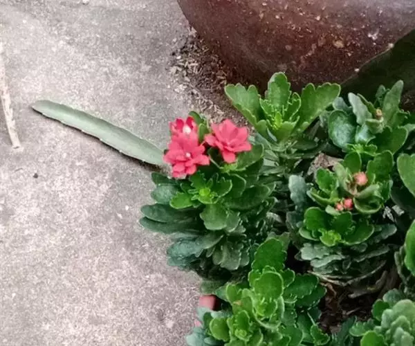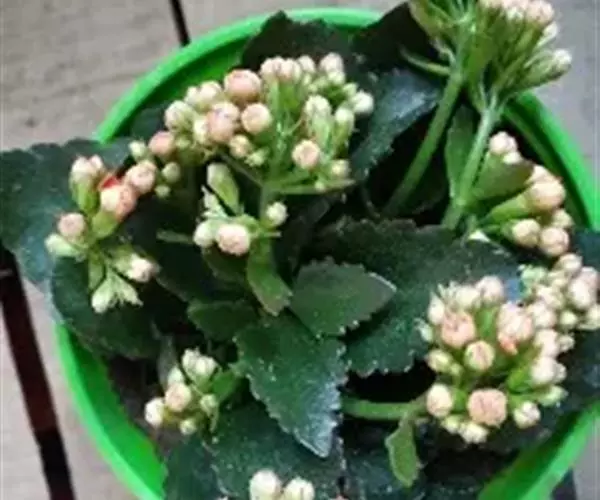 长寿花是常绿多年生草本多浆植物。植株小巧,茎直立,株高10-30厘米。叶对生,叶片密集翠绿,长圆状匙形或椭圆形,长4-8厘米,宽2-6厘米,肉质,叶片上部叶缘具波状钝齿,下部全缘,亮绿色,有光泽,叶边略带红色。叶片属厚肉质,密集深绿,有光泽。