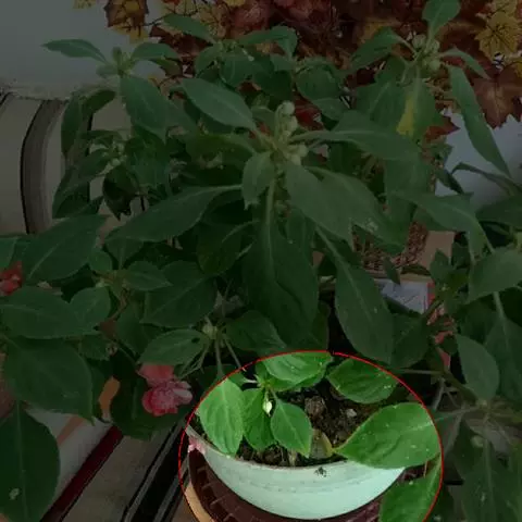 叶小,花粉红。