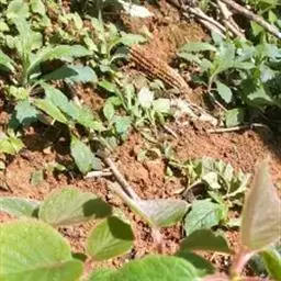 因猕猴桃属浅根性树种,根系扩展的面积比较大,故坑挖得不必太深,但应大些。栽前进行修根(剪去受伤、劈裂等残根)。栽种时要把苗木扶直、摆正,使根系舒展,一边将细碎表土埋盖根部,一边轻轻将苗木向上提动一下,使根系舒展,与土壤紧密接触,然后用脚踩实,需注意不能让苗根接触底肥,否则会烧死苗木。同时,还要注意把苗木的接口露在地表以上(约5厘米左右),绝不可栽种过深或过浅。栽后,浇足水。约7天左右,再浇第2水,水渗下后封土盖地膜保湿、保温。