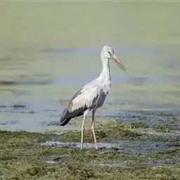 钳嘴鹳:鹳科动物。双翅展开时宽达81厘米。体型很大,体长81厘米。体羽白色至灰色,冬羽烟灰色。…