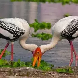 彩鹳:鹳科、鹮鹳属的鸟类。体长93-102厘米,体重2-3.5千克。橙黄色的嘴粗而长,…