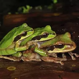 树蛙是树蛙科两栖动物的统称。树蛙体中等或大,一般雄蛙吻端斜尖,雌蛙吻端高钝;舌后端缺刻深,梨骨齿发达,…