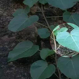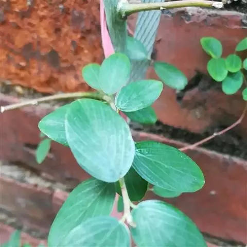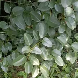 藤状或攀援灌木,高达5米:幼枝无毛,老枝黄褐色,平滑无毛。叶纸质至厚纸质,互生或在短枝顶端簇生,卵状椭圆形或卵状矩圆形,长3-6厘米,宽1.6-3.5厘米,顶端圆形或钝,常有小尖头,基部圆形或近心形,上面绿色,无毛,下面灰白色,仅脉腋被疏微毛,侧脉每边8-10条;叶柄纤细,长1.2-2.6厘米,带红色,无毛。