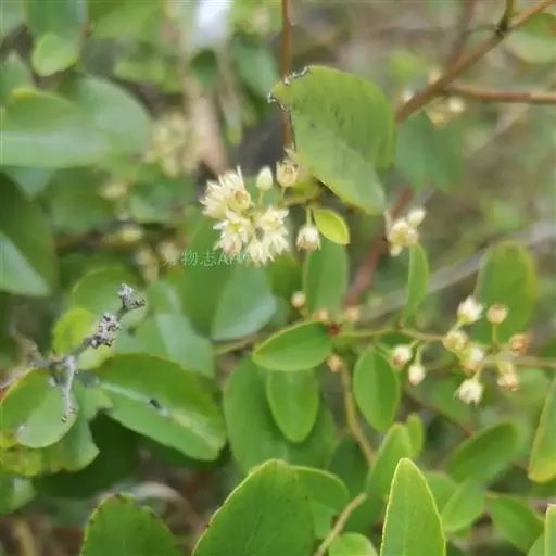 勾儿茶,为勾儿茶属藤状或攀援灌木,高达5米。生于向阳的山坡灌丛或路旁。分布陕西、湖北、云南、广东、河南、湖南等地。