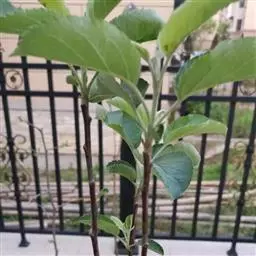 小乔木,高达2.5-5米,树枝直立性强;小枝细弱圆柱形,嫩时被短柔毛,老时脱落,紫红色或暗褐色,具稀疏皮孔;冬芽卵形,先端急尖,无毛或仅边缘有绒毛,暗紫色。