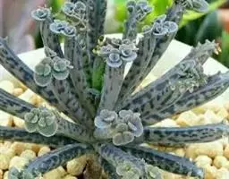棒叶落地生根是景天科、落地生根属植物。茎直立、粉褐色。叶圆棒形,上表面有沟、粉色,有红褐斑。…