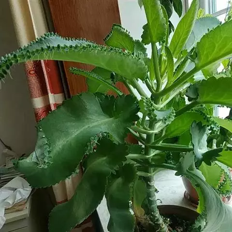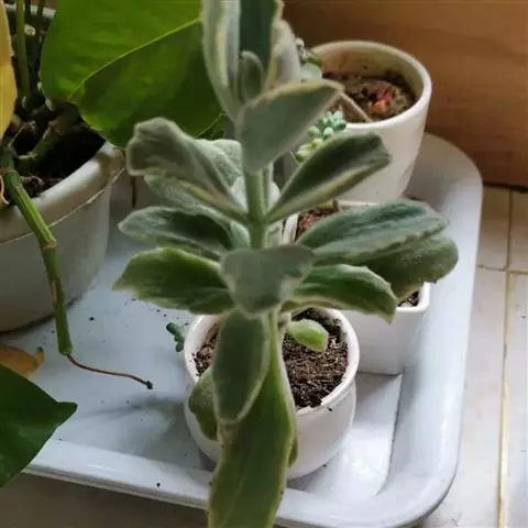 长寿花是常绿多年生草本多浆植物。植株小巧,茎直立,株高10-30厘米。叶对生,叶片密集翠绿,长圆状匙形或椭圆形,长4-8厘米,宽2-6厘米,肉质,叶片上部叶缘具波状钝齿,下部全缘,亮绿色,有光泽,叶边略带红色。叶片属厚肉质,密集深绿,有光泽。