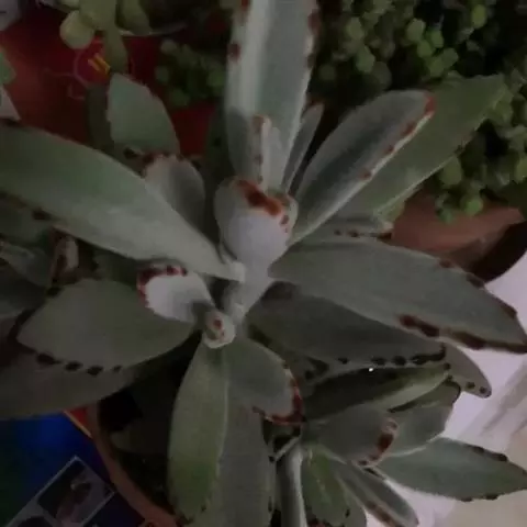 褐斑伽蓝是景天科、伽蓝菜属多年生肉质草本植物或小灌木。全株灰白色,密布白色茸毛。叶片长卵形,…