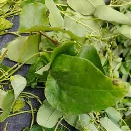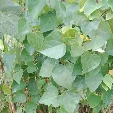蝙蝠葛的根茎。味苦,性寒;有小毒;归肺、胃、大肠经;具有清热解毒、祛风止痛的功效;主治咽喉肿痛、热毒泻痢、风湿痹痛等病症。现代药理研究认为,北豆根具有一定的抗肿瘤作用,可用于治疗肝癌、喉癌、食道癌等。