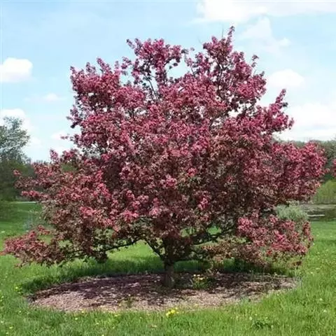 特征特性:优秀的高稳性紫花色系树种,花叶果兼赏。枝条密集,树形潇洒。花蕾深红色,花紫红色,花药黄色,花丝、花柱、花萼和花梗均紫红色。花多而密,花芳香;叶偶裂,叶缘波状钝锯齿。叶紫红色,紫叶期长达3个月。果实红棕色,果萼片宿存。