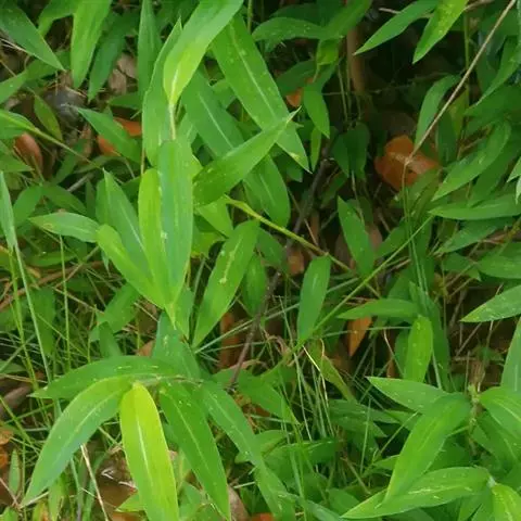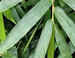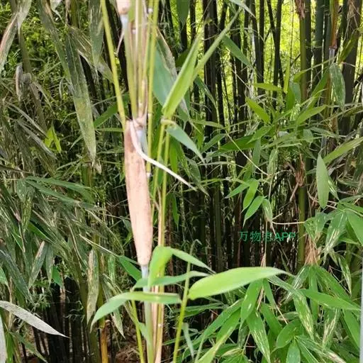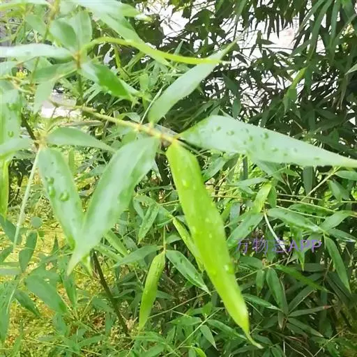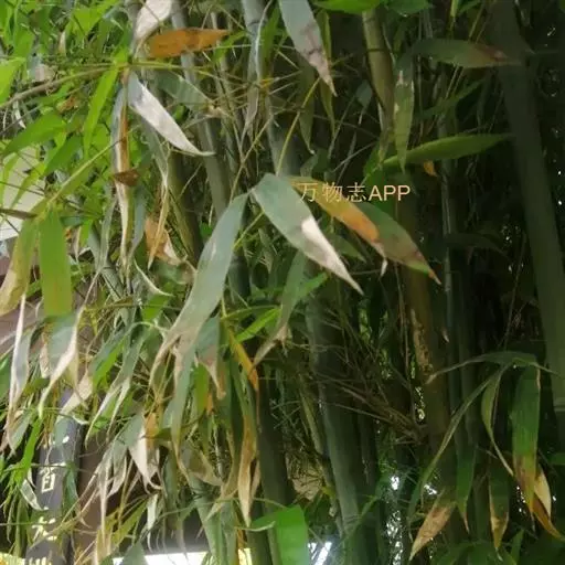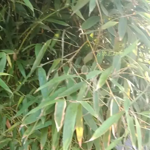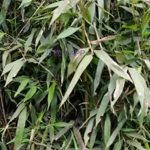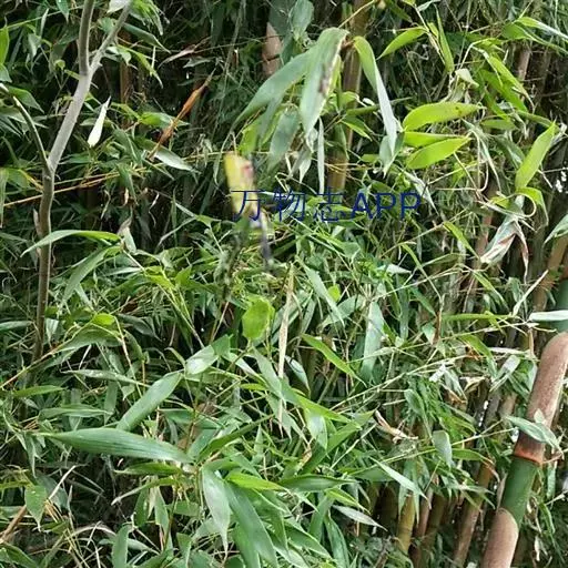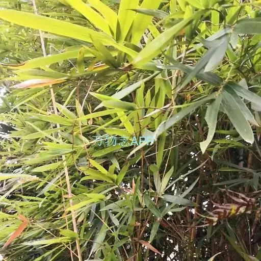 形态特征:多年生竹类,地下茎匍匐,秆高约3m,直径1~l.5m,箨甚长,简期几抱没节间,外表粗糙,具刺毛,不易脱落,节间lO~20cm,上端节上着生细枝,3出或多数,亦具有箨或无箨,叶舌片黑褐色,密生毛茸,假叶长卵形,锐尖头,叶粗革质,平行脉宽2~3m,1小枝叶约l~3枚。叶柄扁平,叶片披针形革质,叶背带粉色,密生短刚毛,尤以渐尖锐尖,楔脚或圆脚,长l0~20cm,宽1.5~2cm,极少开花。