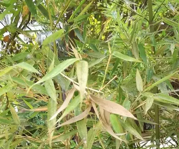 (2)7~8月份发病盛期,应加强调查,发现新竹枝叶枯黄,竹秆节部出现褐色病斑,应及时在发病部位以下1~2节处钩去竹梢,以免病害继续蔓延,造成整株枯死。
