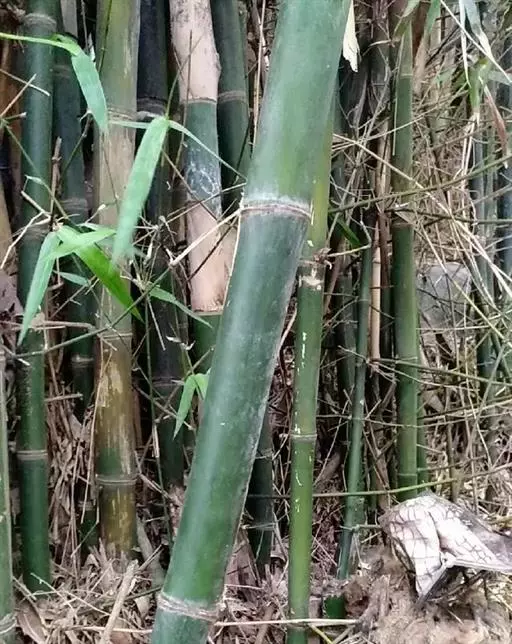 白粉竹:丛生型,慈竹属,秆节长,形如“苦慈”,竹秆面上有一层薄薄的白粉而得名。