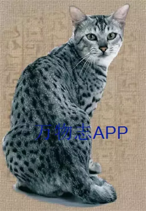 埃及猫(Egyptian Mau)属于中型短毛猫品种。胎生,体重2.5-7千克,皮肤和毛色上都有像豹的斑纹,埃及猫形体适中,肌肉发达。埃及猫是点状虎斑种的猫中唯一不以人工繁殖,而是自然形成点状花纹的猫种,被誉为“小型豹”,身上的点状花纹、或大或小随意分布,脸、四肢和尾巴有条纹图案。额头的眉宇之间有一个圣甲虫图案。