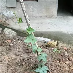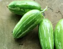 植物匍匐生长,茎蔓长2.5米左右,分枝性中等。叶三角形,浅裂,绿色,叶背多茸毛。主蔓第九节以后开始结瓜,单株结瓜2-3个。瓜圆筒形,中部稍细。