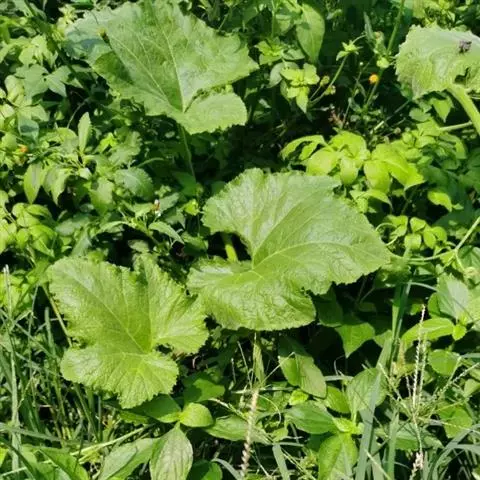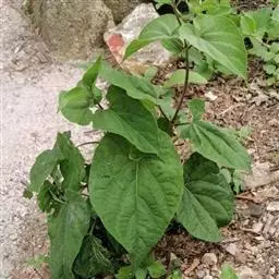 一年生蔓生草本;茎有棱沟,有短刚毛和半透明的糙毛。叶柄粗壮,被短刚毛,长6-9厘米;叶片质硬,挺立,三角形或卵状三角形,先端锐尖,边缘有不规则的锐齿,基部心形,弯缺半圆形,深0.5-1厘米,宽3-4厘米,上面深绿色,下面颜色较浅,叶脉在背面稍凸起,两面均有糙毛。