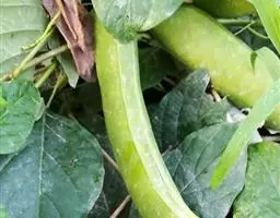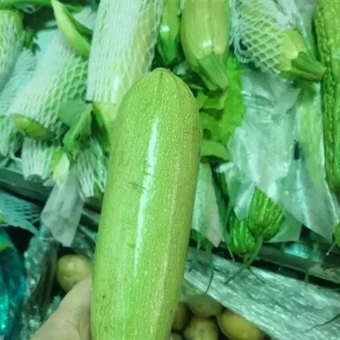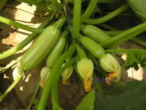 长蔓西葫芦 植株蔓长3米,粗2.2厘米。叶心脏形,深绿色,叶缘有不规则锯齿。第一雌花着生于主蔓第四至六节。瓜长椭圆形,表皮光滑,绿白色,有棱6条。一般单瓜重2-3千克。