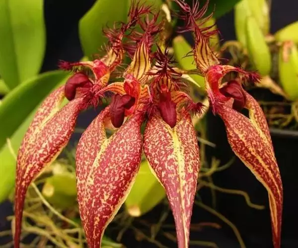 梳帽卷瓣兰(学名:Bulbophyllum andersonii (Hook. f.) J. J. Smith):根状茎匍匐,粗3-5毫米,被杯状膜质鞘或鞘腐烂后残存的纤维。假鳞茎在根状茎上彼此相距3-11厘米,卵状圆锥形或狭卵形,顶生1枚叶,干后灰褐色。叶革质,长圆形。花葶黄绿色带紫红色条斑,从假鳞茎基部抽出,直立,伞形花序具数朵花,花浅白色密布紫红色斑点。花期2-10月。