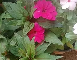 营养:新几内亚凤仙对肥害非常敏感,因此忌肥料过重。若基质pH值很低会引起微量元素中毒症,过多的微量元素会使生长点死亡、叶缘坏死,甚至整株植物死亡。在扦插苗的新生根长到花盆的边缘时便可以开始浇肥料了,可以每次施用含100-150ppm的氮元素、50-75ppm的磷元素、100-150ppm的钾元素肥料。若不能每次都浇肥料,可以每三次浇水时施用一次肥料,肥料中各元素的浓度如下:300-350ppm氮元素、100ppm磷元素、300-350ppm钾元素。