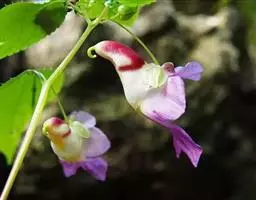 多年生常绿草本。株高25-30cm,茎肉质,光滑,青绿色或红褐色,茎节突出,易折断。多叶轮生,叶披针形,叶缘具锐锯齿,叶色黄绿至深绿色,叶脉及茎的颜色常与花的颜色有相关性。花单生叶腋(偶有两朵花并生于叶腋的现象),基部花瓣衍生成矩,花色极为丰富,有洋红色、雪青色、白色、紫色、橙色等。花期6--8月。