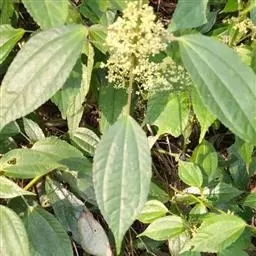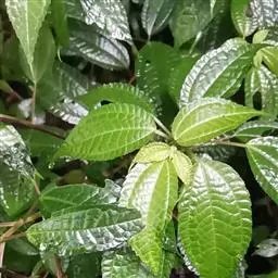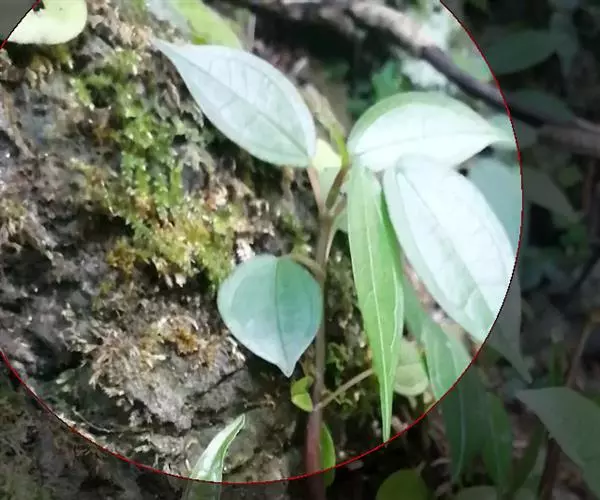 茎肉质,高10- 70厘米,粗1.5-5毫米,基部常多少木质化,干时带蓝绿色,常被灰白色腊质,下部裸露,节间距0.5-3厘米,分枝或几无分枝。叶薄纸质或近膜质,同对的不等大或近等大,形状大小变异很大,卵形、卵状披针形、椭圆状披针形,卵状或倒卵状长圆形,长1-15 厘米,宽0.6-5厘米,先端尾状渐尖或长尾状渐尖,基部常偏斜,圆形、浅心形或心形,有时变狭近楔形,边缘稍厚,全缘,有时波状,干后上面暗绿色或蓝绿色,下面淡绿色,常呈细蜂窠状,疏生腺点,钟乳体梭形,长0.3-0.4毫米,在上面明显,基出脉3(- 5)条,其侧出的一对弧曲,伸达近先端网结或消失,侧脉多数,常不规则地结成网脉,外向的二级脉在远离边缘处彼此网结,有时二级脉不明显;叶柄长。0.5-7厘米;托叶很小,三角形,长约1-2毫米,渐脱落。