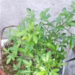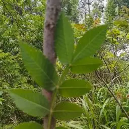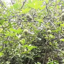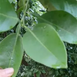 柚 乔木。嫩枝、叶背、花梗、花萼及子房均被柔毛,嫩叶通常暗紫红色,嫩枝扁且有棱。叶质颇厚,色浓绿,阔卵形或椭圆形,连冀叶长9-16厘米,宽4-8厘米,或更大,顶端钝或圆,有时短尖,基部圆,翼叶长2-4厘米,宽0.5-3厘米,个别品种的翼叶甚狭窄。