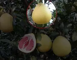 坪山柚:果椭圆形,两肩削,果顶近于平坦,蒂部有凸棱,果皮油胞大,凸起,海绵层及果肉均淡红色,果心空,肉爽脆,水分多,味清甜,酸份低。果期与文旦同。
