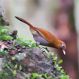 黑额山噪鹛是噪眉科、噪鹛属中型鸟类,体长27-31厘米。上体橄榄褐色,尾上尾下覆羽棕红色,…