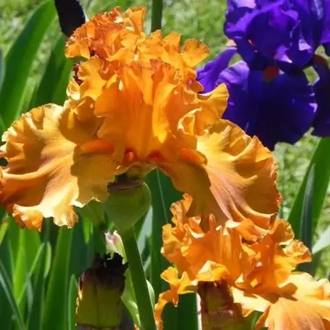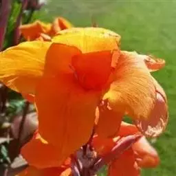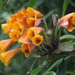 花葶与叶近等长,不分枝,在顶端聚生2-6朵花;苞片宽卵形,宽1-2.5厘米,先端长渐尖至近尾状,全长1.8-4厘米;花近簇生,具很短的花梗;花被金黄色或桔黄色;花被管长1-1.7厘米,约1/3-2/3为苞片所包(最上部的花除外),花被裂片长6-7.5厘米,内三片宽1.5-2.5厘米。蒴果椭圆形,稍有三钝棱,长约2厘米。花果期6-10月。