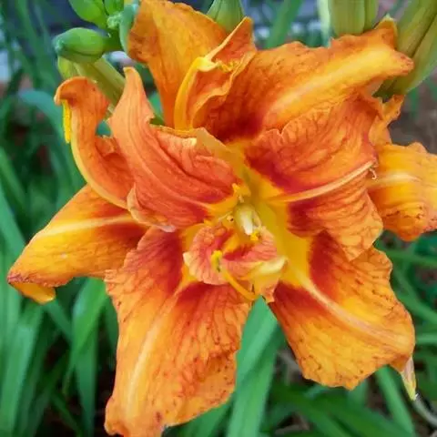 重瓣萱草 L. var. kwanso Regel),百合科萱草属植物。根近肉质,…