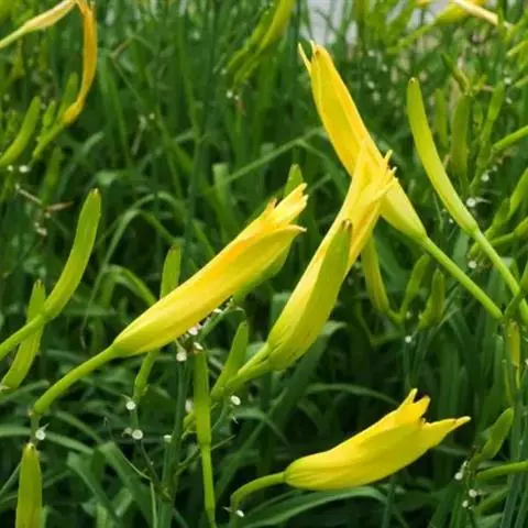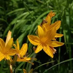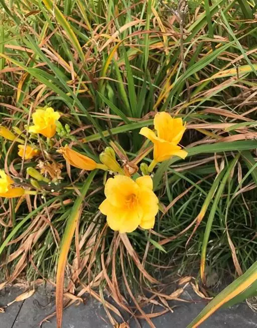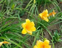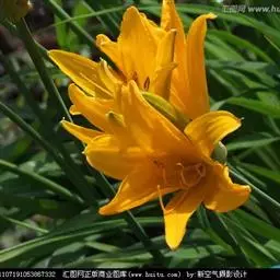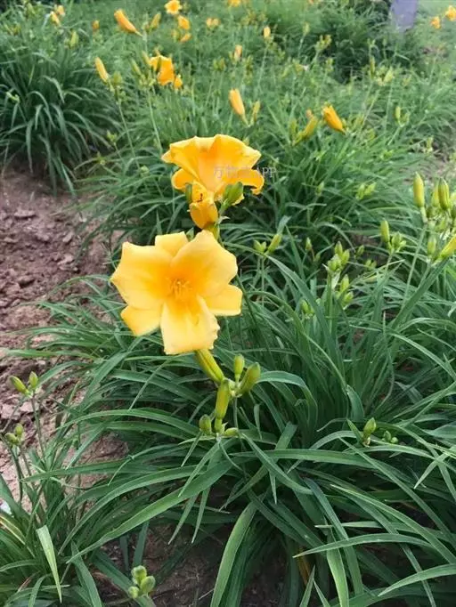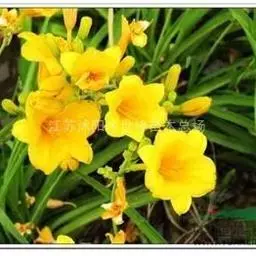 金娃娃萱草:是萱草的人工栽培的园艺品种。地下具根状茎和肉质肥大的纺锤状块根。叶基生,条形,排成两列,…