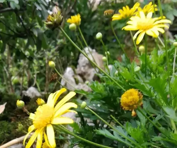 黄金菊,是一种菊科、菊属草本植物,多年生草本花卉 ,叶子绿色,花黄色,花心黄色,冬季至早春开花。全株具香气,叶略带草香及苹果的香气。主要分布于我国的东北、华北、华东、华南、西北、西南,华中等地区。其观赏分类为观花类,高度范围为30~65cm。黄金菊具有明目清火、降血压、降血糖、降血脂、改善心脑供血、治疗慢性咽炎、气管炎、抗毒抑菌等功效。