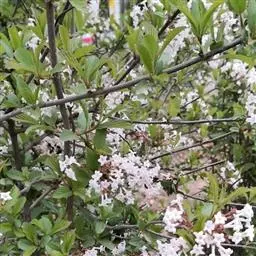 灌木,高约1米;枝及小枝甚粗壮,节间短。叶较小,矩圆状椭圆形,两端楔尖,长2~3厘米,中部以上边缘具钝锯齿,侧脉与小脉不明显。花序极小,直径约1.5厘米。花密生于序轴的第一级分枝上;花冠白色,较短,筒长约5毫米;花药堇紫色。花期5月。