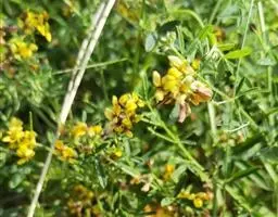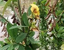 一年生灌木状草本,披散或伏地,高15-100厘米。茎纤细,多分枝,无毛。偶数羽状复叶,具小叶3-10对;托叶干膜质,下延成耳,有纵纹,无毛;叶柄长约1毫米;叶轴长1-3厘米,上面有小刺毛;小叶薄纸质,长圆形,长4-10毫米,宽1.5-3毫米,先端钝或圆形,具刚毛状的短尖头,边缘和上面中脉疏被刚毛;侧脉每边5条;小托叶小,刚毛状;小叶柄短,长约1毫米,无毛。总状花序腋生;总花梗长2-3厘米;花小,1-6朵或更多,密集于总花梗的近顶部;花梗短;小苞片2,卵形,具纵脉纹,有缘毛,长约为萼的1/3,紧贴花萼,宿存;花萼硬纸质,具纵脉纹,长5-8毫米,疏被刚毛;花冠黄色,稍长于萼,旗瓣倒卵形,宽约5毫米,先端微凹,瓣柄短,翼瓣较旗瓣短,长圆形,具瓣柄,冀瓣与龙骨瓣近等长;子房线形,有胚珠多颗。荚果有荚节4-6,叠藏于萼内,有密集的乳头状凸起。花期8-9月,果期9-10月。