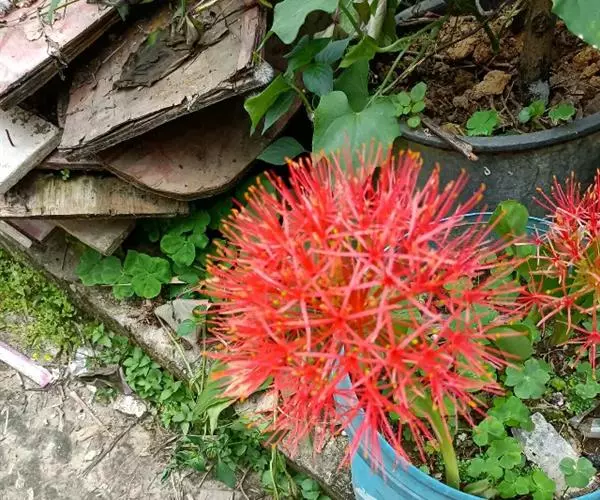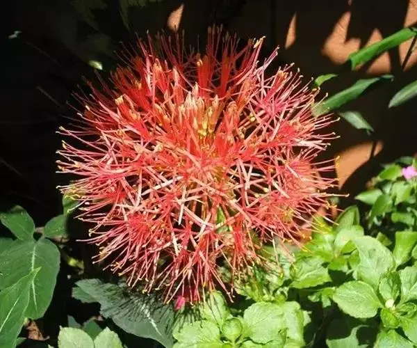 网球花花色艳丽,有血红、白和鲜红等色。花朵密集,四射如球,是常见的室内盆栽观赏开卉。南方室外丛植成片布置,花期景观别具一格。