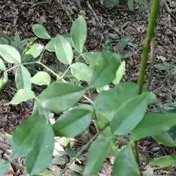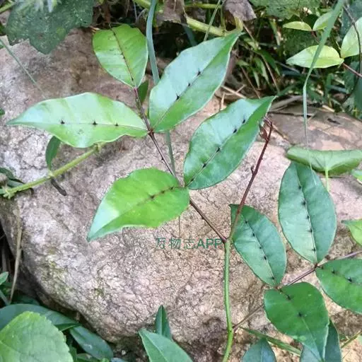 木质藤本;茎、枝、叶轴下面和小叶中脉两面均着生钩状皮刺。单数羽状复叶,长7-15厘米;小叶3-11,对生,革质,卵形至卵状矩圆形,无毛,上面稍有光泽,伞房状圆锥花序,腋生;花4数;萼片宽卵形。蓇葖果成熟时紫红色,有粗大腺点,顶端正具短喙。