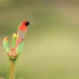 火尾太阳鸟为太阳鸟科太阳鸟属的鸟类。体长20厘米,色彩艳丽。雄鸟红色,具形长的艳猩红色中央尾羽。…