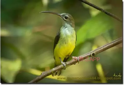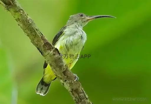 叉尾太阳鸟,雀形目太阳鸟科太阳鸟属留鸟;为小型鸟类,雄鸟头顶辉蓝绿色,上体橄榄绿色,腰明黄色,…