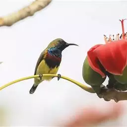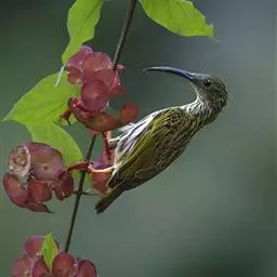 纹背捕蛛鸟:为太阳鸟科捕蛛鸟属的鸟类。是太阳鸟科中体型较大的一种,体重25-45克,…