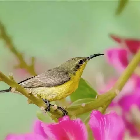 黄腹花蜜鸟是雀形目太阳鸟科花蜜鸟属鸟类。体型较小、喙略短而弯、腹部黄色。…