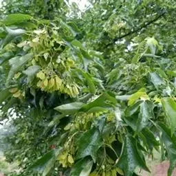 翅果淡黄褐色,常生成下垂的圆锥果序;小坚果凸起,近于卵圆形,长6毫米,宽5毫米;翅宽1-1.2厘米,连小坚果长3-3.5厘米,张开近于水平。花期6月,果期10月。