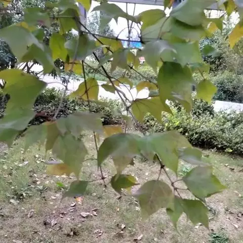 落叶乔木,高约10米。树皮平滑,褐色或深褐色。小枝细瘦,无毛,当年生校绿色或淡绿色,多年生枝橄榄褐色或红褐色。冬芽卵圆形,外部的鳞片褐色一边缘具纤毛,内部的鳞片外侧密被长柔毛。叶薄纸质或膜质,基部深心脏形,外貌近于圆形,直径8-12厘米,常7裂,有时基部裂片再分为小裂片2枚;裂片卵状长圆形,稀卵形或三角卵形,先端锐尖、稀尾状锐尖,边缘具不整齐的紧贴的钝尖锯齿,裂片间的凹缺成很狭窄的锐尖,上面绿色,无毛,下面淡绿色,除叶脉上有长柔毛及脉腋有丛毛外,其余部分近于无毛,主脉及侧脉在两面均凸起;叶柄细瘦,长达7厘米,嫩时被长柔毛,渐老时无毛。