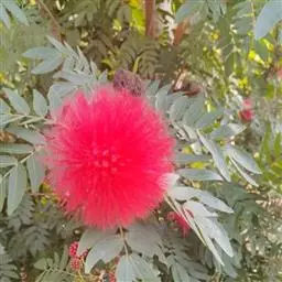 朱缨花,豆科朱缨花属的多年生木本植物,枝条扩展,小枝褐色;叶片呈卵状披针形;头状花序腋生,…