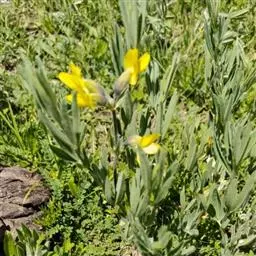 总状花序腋生;总花梗长2.5-7厘米;苞片与托叶相仿;小苞片宽卵形至宽椭圆形,具明显线纹,与萼贴生,比苞片大;花2-4朵,常密集于花序顶部;花萼5齿裂,上部2枚多少合生,下部1枚最长,线形;花冠淡紫红色,长2-3厘米,旗瓣宽圆形,背面密被柔毛,近基部具一短距,翼瓣镰状倒卵形,一侧具下弯的耳,龙骨瓣宽而内弯,近半圆形,各瓣具短瓣柄;雄蕊二体。荚果线形,长7-13厘米,宽约5毫米,扁平,先端渐尖,具直而细长的喙,喙长10-15毫米,果瓣近背腹两缝线均凸起呈脊状;种子7-15颗,长椭圆形,无种阜,种脐小。花期11-12月。