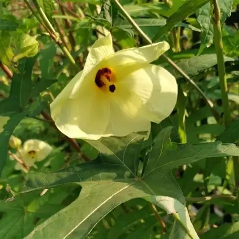 黄蜀葵 Medicus),是锦葵科秋葵属一年生或多年生草本。全株疏被长硬毛;叶近圆形,…