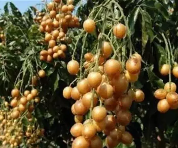 小乔木,高达12米。小枝、叶轴、花序轴、尤以未张开的小叶背脉上散生甚多明显凸起的细油点且密被短直毛。叶有小叶5-11片,小叶卵形或卵状椭圆形,常一侧偏斜,长6-14厘米,宽3-6厘米,基部近圆形或宽楔形,两侧不对称,边缘波浪状或具浅的圆裂齿,叶面中脉常被短细毛;小叶柄长4-8毫米。圆锥花序顶生;花蕾圆球形,有5条稍凸起的纵脊棱;花萼裂片阔卵形,长约1毫米,外面被短柔毛,花瓣长圆形,长约5毫米,两面被短毛或内面无毛;雄蕊10枚,长短相间,长的与花瓣等长,花丝线状,下部稍增宽,不呈曲膝状;子房密被直长毛,花盘细小,子房柄短。果圆形、椭圆形或阔卵形,长1.5-3厘米,宽1-2厘米,淡黄至暗黄色,被细毛,果肉乳白色,半透明,有种子1-4粒;子叶深绿色。花期4-5月,果期7-8月。产海南的其花果期均提早1-2个月。