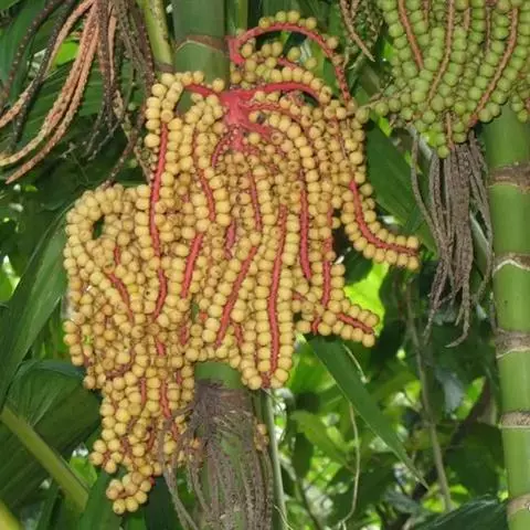 霸王棕的果实为核果,其种子个体较大,单粒种子重达14-17克,具有坚厚的种壳。种子基部有3孔,其中,l孔与胚相对,萌动时胚根由此穿出,其余2孔为假孔。果腔内胚乳含有丰富的营养物质,供种子萌发时吸收。