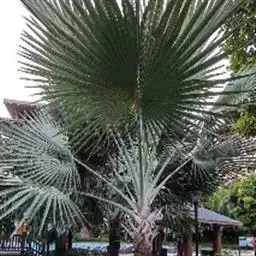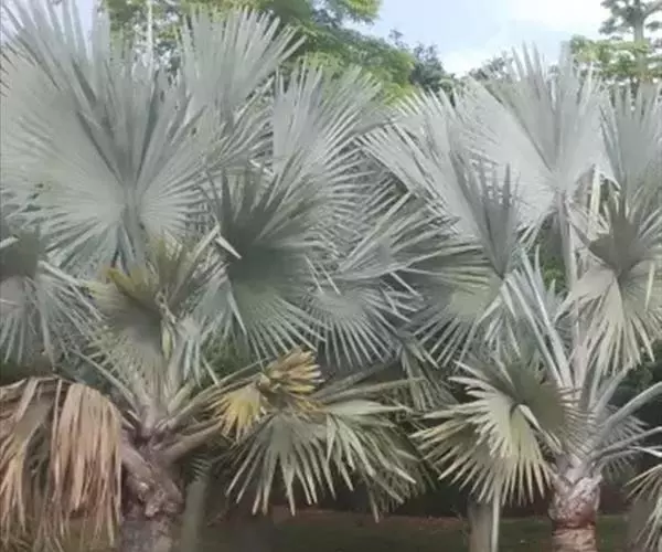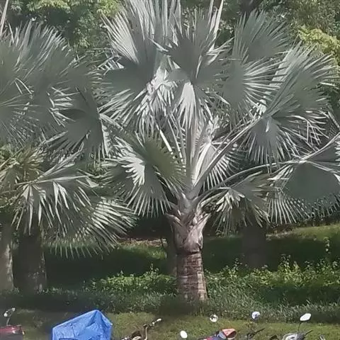 霸王棕,又名稗斯麦桐、美丽蒲葵。树姿魁伟、雄壮,特别是掌状叶硕大丰满,呈神奇的蓝绿色,因此被命名者比之为德国“铁血宰相”——稗斯麦而得名。南方沿海城市营造“椰风海韵”的热带海滨景观。