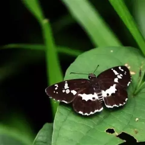 姜弄蝶 Udaspes folus ,又叫银斑姜蝶。幼虫吐丝粘叶成苞,隐藏其中取食,…