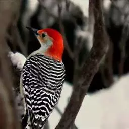 红腹啄木鸟成年雄鸟头项有红帽,翅膀和上体是黑白相间的斑纹状羽毛,腹部有一片红羽毛。头亦大,但颈较长,…